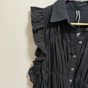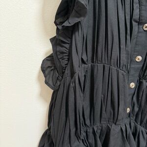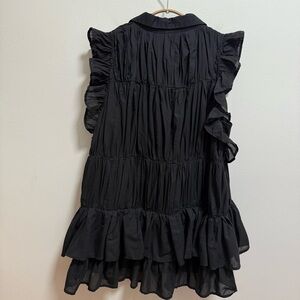 Anthropologie sleeveless ruffle tiered collared black mini shirt dress small NWT
