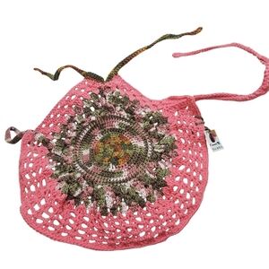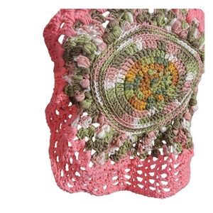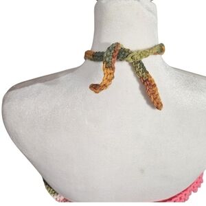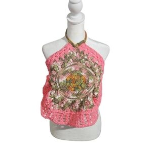 Handmade Crochet Halter Top Boho Camo Pink Green Swim Cover Up Top