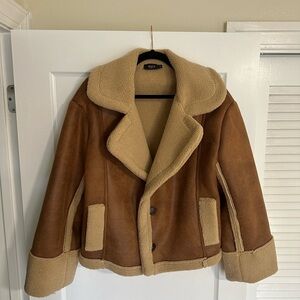 Vici Brown and Cream Shearling Jacket Medium
