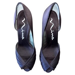 Nina Black Satin Ruched Peep Toe Heels Dress Shoes Women Size 8.5M