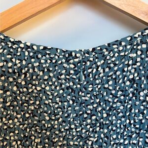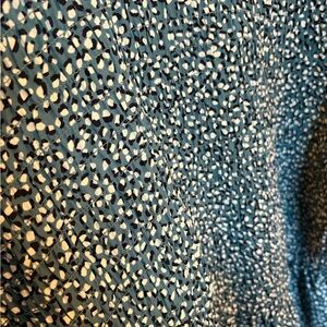 Chic teal dress top white and black patterns. Features a flattering silhouette and modern style.
