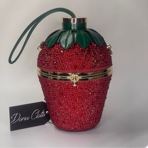 🆕 Rhinestone Studded Strawberry Shaped Handbag, Clutch,Shoulder Bag