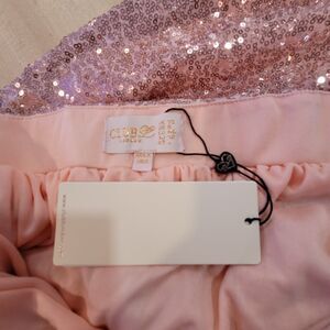 The NWT new Club London women's pink sequin pleated midi skirt is a statement piece perfect for formal occasions like weddings or parties. Made of polyester with a solid pink color and sequin accents, this skirt features a pleated design and a midi length. The skirt is lined and has an elastic waist for added comfort and versatility. Show off your style in this Vegas-inspired piece that will make you stand out from the crowd. Hidden Zipper, zipper works. Size 8