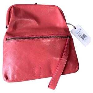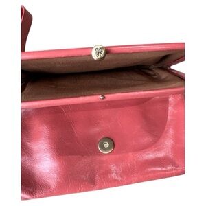 Beautiful cherry blossom color and luxuriously soft genuine leather describe this Hobo Lauren Wristlet. It has all the features of a clutch with a bonus strap to allow for truly hands free experiences. Zippered pocket on the back of the bag. Magnetic snap closure to unfold the bag and a snap frame closure to open the main compartment. Brushed antique brass hardware. Interior front with 6 credit card/open slots. Zippered closure inside the main compartment. Sandalwood lining. This lovely wristlet can elevate any style and yet is casual enough to fit any setting. NWTs