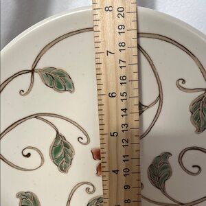 plate with intricate green and brown leaf design. Perfect for adding a touch of nature to your decor.