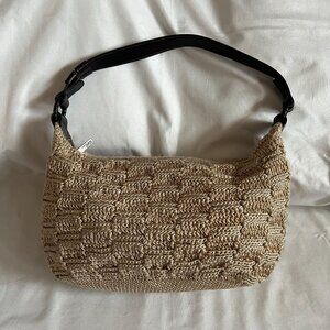 The Sak Elliott Lucca Natural Woven Straw Shoulder Bag With Black Strap & Interi