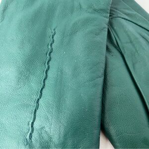 Upgrade your style with these elegant green leather gloves. Perfect for any occasion, they offer both comfort and sophistication.