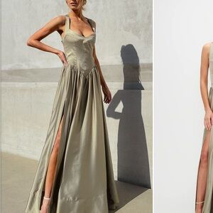 Show Me Your MuMu Abigail Maxi Dress Moss Green Luxe Satin