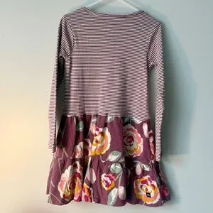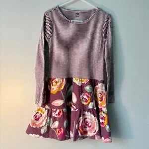 Adorable long sleeve dress by Tea Collection featuring a soft striped knit top and a vibrant floral skirt. Designed with a drop waist and ruffle hem for a fun, twirly silhouette. Comfortable and perfect for everyday wear, special outings or holidays like Easter!