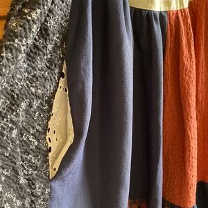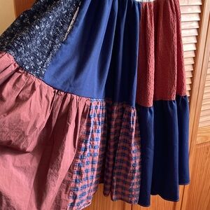 Description from site: Our first and most loved pieced, the one-of-a-kind Patchworked Dress made in NYC. Each unique dress features vintage textiles (many mended in house) eyelet, as well as dead stock fabric sourced from NYC cutting rooms in effort to utilize the exorbitant waste generated by the fashion industry. All dresses have pockets.