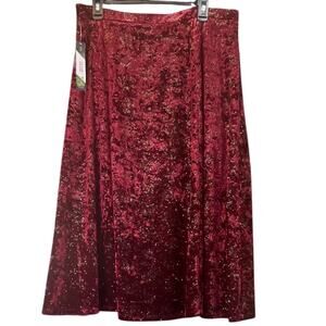 Lularoe Elegant Womens Red/Maroon Velvet Gold Glitter Comfortable Pocket Maxi Skirt