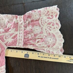 Anthro Kindred Embroidered Blouse Women XL Pink Scoop Neck Feminine Peasant Boho