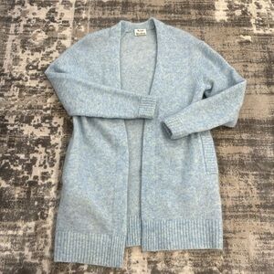 Classic Acne Studios cardigan in nylon/polyamide/mohair. Dusty blue colour. In excellent condition. Size xxs but fits very oversized.