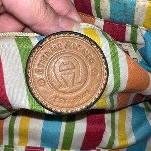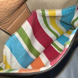 Etienne Aigner Tan Canvas & Faux Leather Shoulder Bag With Colorful Striped Inte