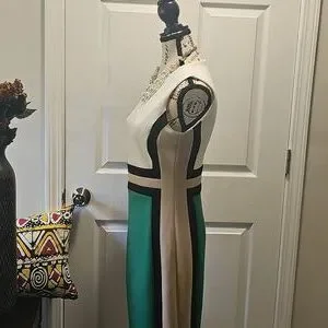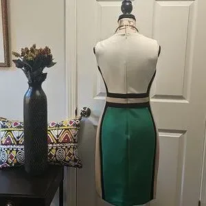 Calvin Klein Green, Cream and Black Slimming Pencil Dress, Size 4.