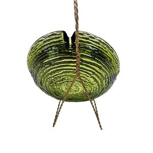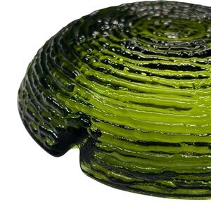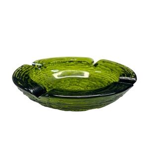 Anchor Hocking Soreno Heavy Green Glass 6" Ashtray Textured Vintage Bar Retro