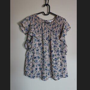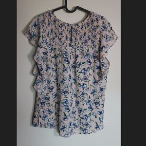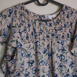 DR2 Pink and Blue Floral Ruched Stretchy Summer Top Size Large