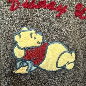 Soft cozy gray towel-like fabric (terry cloth?) with vibrant red Walt Disney World embroidery.