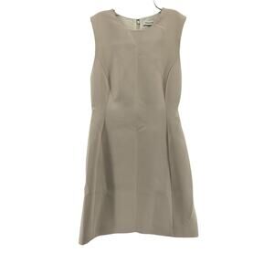 Babaton 'Opportunity' Cream Polyester Dress Size 6: this is a lined crewneck mini dress with an hourglass silhouette and princess seams for shaping, invisible back zip closure, princess seams fo shaping. Discoloration on inner lining near zipper and around neckline. Approx measurements = 16in bust width by 14in waist across by 18in hip across by 33in center back length.