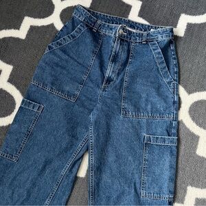 H&M DIVIDED Blue Denim cargo style women’s size 8 Jeans. Hi rise wide leg