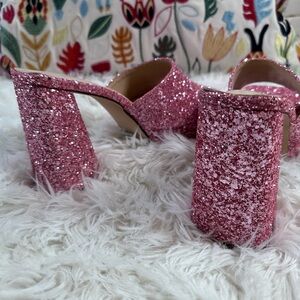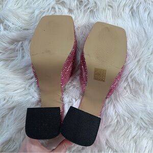 Dolls Kill • Barbie Pink Square Toe Glitter Platform Open Toed Mules