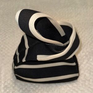 This is a chic black and cream striped mini tote bag — perfect for carrying small essentials or styling as a statement accessory. Based on its measurements (approx. 11” tall x 8” wide x 3” deep), this bag is compact yet structured, ideal for quick outings, brunch, or as a stylish handbag insert.