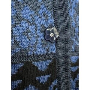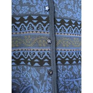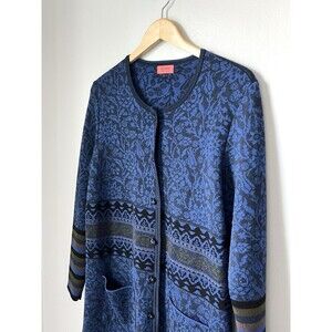 OLEANA Merino Wool Silk Road Floral Pattern Long Cardigan Size XXL Luxury Blue