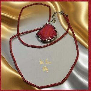 Authentic Kendra Scott Beatrix Necklace and Dunn Red Coral Earrings Set
