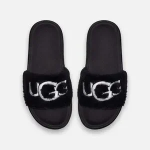 Made from premium suede lined with soft textile, the Laton Fur slide offers a super-soft step with its contoured foam footbed and our ultra-light, durable, and cushioned Treadlite by UGG™ outsole. Featuring a logo-embellished fluff upper made from silky sheepskin, it harmonizes the trend-right aesthetics of an athletic slide with the luxurious wearing experience we're known for. Size 9. Good preloved condition general wear on footbed