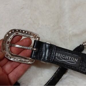 Beautiful Brighton belt with heavy metal detailing in great used condition has signs of wear but are very minor