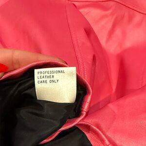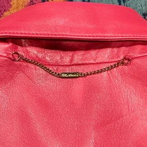 Elevate your style with this vibrant pink leather jacket. Perfect for adding a bold touch to any outfit. This is vintage leather in great condition, couple tiny marks but no holes or scratches. Does have a light vintage smell to it.