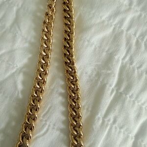 Chic Gucci crossbody with floral pattern. Blue and green design. Gold chain strap adds elegance.