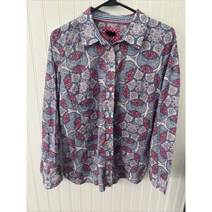 Talbots 100% Cotton Garden Medallion Long Sleeve Button-Up Shirt Size Large