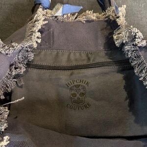Hipchik Frayed Gray Tote Bag with Rainbow Design