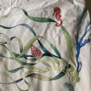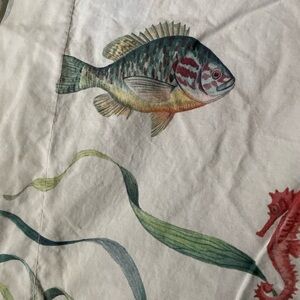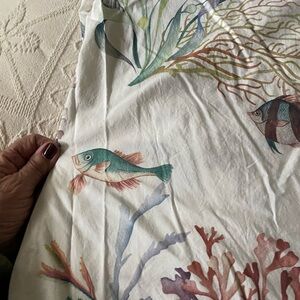Elegant duvet cover with vibrant underwater floral design. Features colorful fish and sea plants. Perfect for adding a touch of oceanic charm to your bedroom. I used this in our guest room on a daybed. I ordered King shams so they would cover the back of the bed.