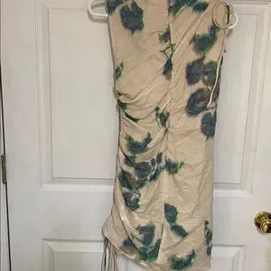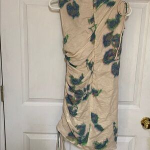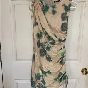 Zara Sleeveless Linen Blend Printed Ruched Mini Dress Size M