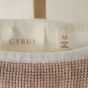 Chic striped sweater by Cyrus. Features brown and white design. Ideal for casual wear.