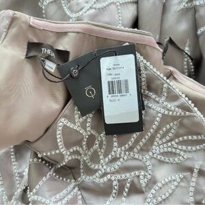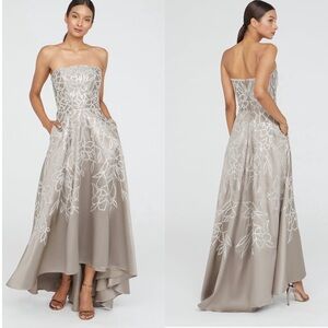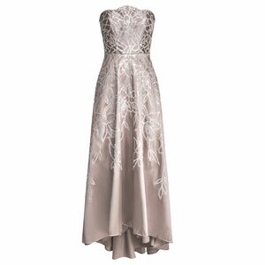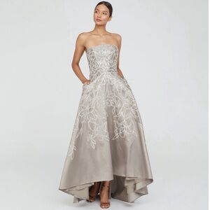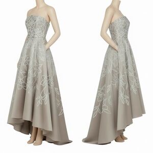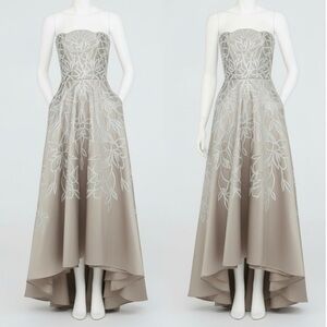 Theia Women's Pamela Crystal Embellished Floral Mikado Strapless A Line Silhouette High Low Maxi Evening Gown Size 4 NEW