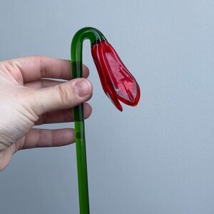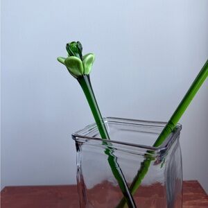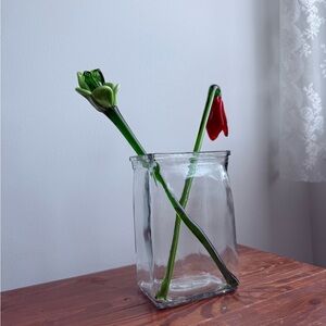 2 Vintage Flowers Murano Style Handblown Glass Valentines Day Gift w/ Vase