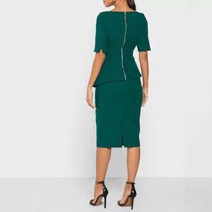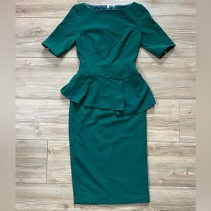 Ted Baker Romolaa Peplum Dress Short Sleeve Dark Green Size 0