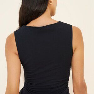 Asymmetrical draped tank top w/ side ruching details