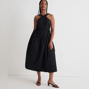 Madewell poplin halter Tiered Black Midi Dress NWT