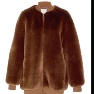 Tibi Luxurious Brown Faux Fur Track Jacket