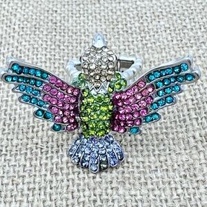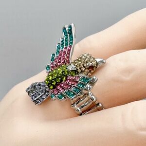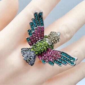 Large Multicolor Rhinestone Bird Cocktail Stretch Ring