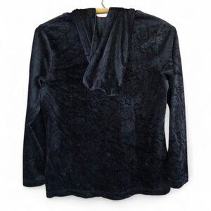 J.Jill Pure Jill Velour Hoodie Jacket XS Petite Zip Front Pockets Black