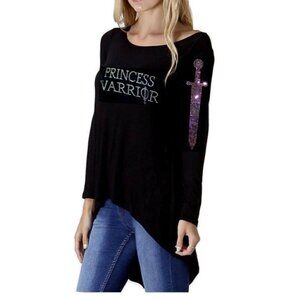 Princess Warrior Black Rayon Stretch Womens Hi Low Pink Sword 3/4 Sleeve Top M