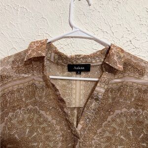 Aakaa Women’s Multicolor V-Neck Long Sleeve Top Lightweight Polyester Blouse