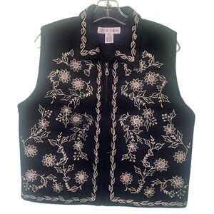 Chrysantheme vintage wool blend vest with cream embroidery. Size large GUC