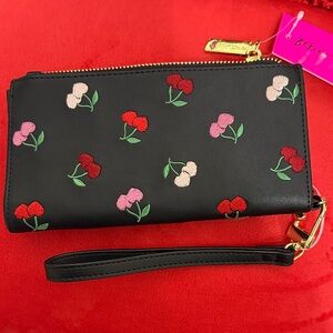 NWT Betsey Johnson Black and Red Cherry Wristlet