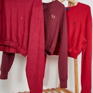 UO Urban Renewal From Vintage Red Chaps Bubble Hem Cropped Jumper Size Large